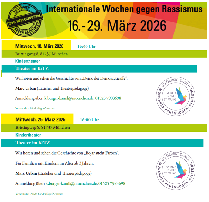 (03/2026) Die Patrick Lindner-Stiftung fördert zwei theaterpädagogische Projekte, die im Rahmen der „Internationalen Wochen gegen Rassismus 2026“ veranstaltet werden.